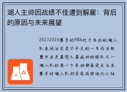 湖人主帅因战绩不佳遭到解雇:背后的原因与未来展望