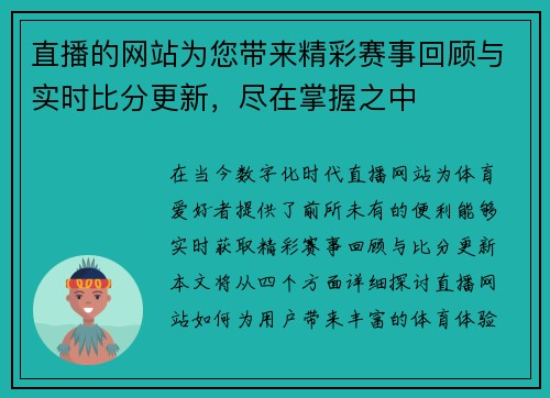 直播的网站为您带来精彩赛事回顾与实时比分更新,尽在掌握之中